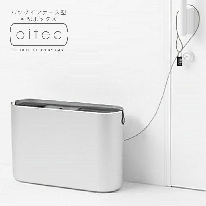 錠前の種類:[宅配人が施錠]バッグのファスナー用南京錠(シリンダー式、キー3本付き)、[oitec所有者が施錠]oitecを固定先に留めるためのダイヤル式錠(可変タイプ)
