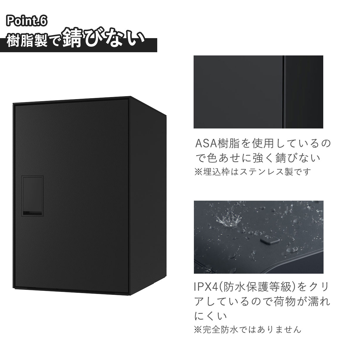 素材(宅配ボックス):外側/ASA樹脂、内側/PP樹脂