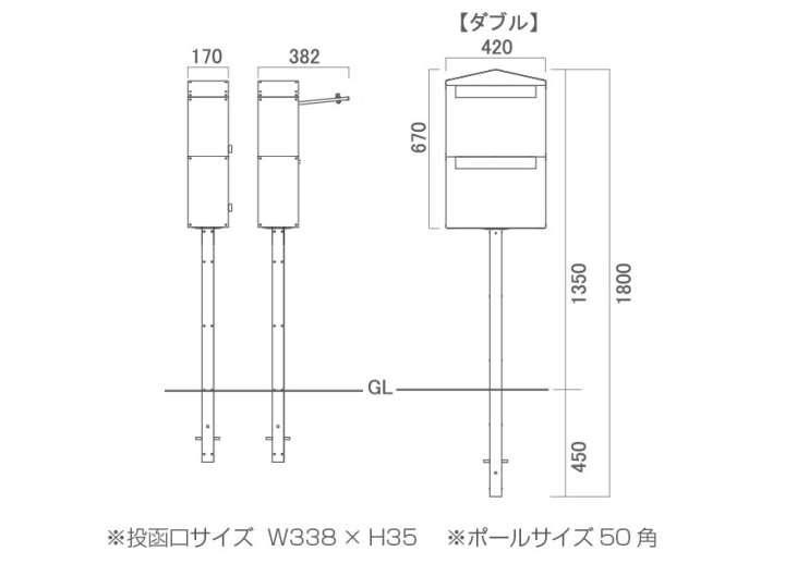 上下にポストが2個付いているので、2世帯や集合住宅に最適です。