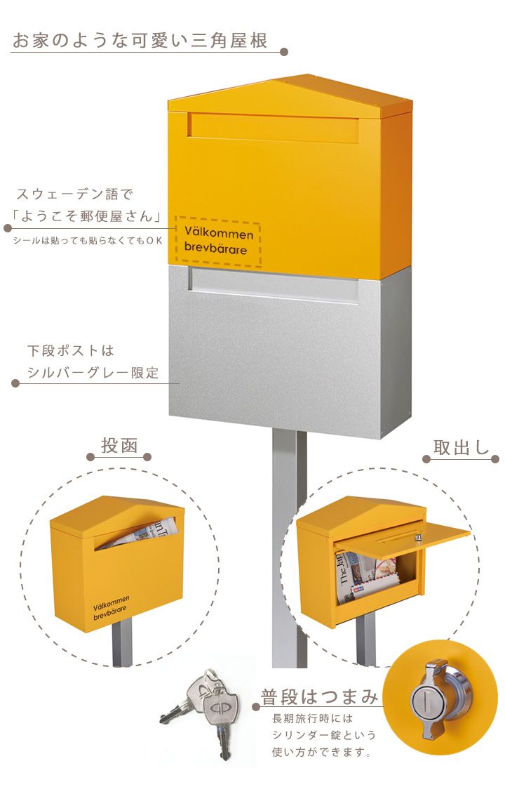 北欧モダンを目指し出っ張りの少ないシンプルな造りながら、上段ポストは三角屋根の家の形が可愛さを演出。