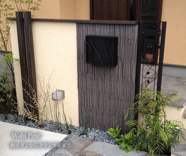 大型配達物対応のシンプルモダンな埋め込みポスト「ワビポスト:埋め込み式」ロートアイアン風の飾りが上品なクラシカルスタイル
