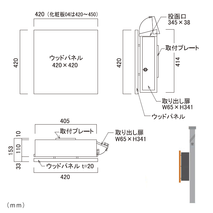 木製パネルの郵便ポスト「ディーポスト」D-POST壁掛けシリーズ。