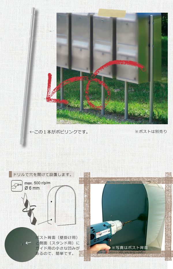 集合住宅、長屋、アパートなどポストを何個も連結する時に便利なポールです。