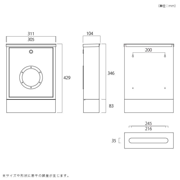 サイズ:本体/W311×H429×D104mm、投函口/W245×D35mm(若干の差異がございます)