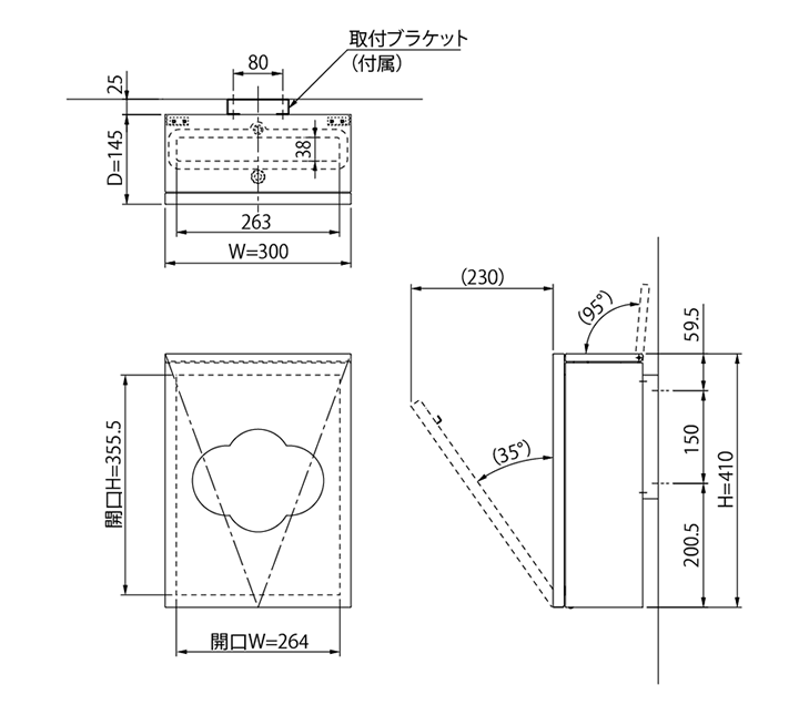 素材:本体/高耐食溶融亜鉛メッキ鋼板(ポリエステル焼付塗装梨地仕上げ)