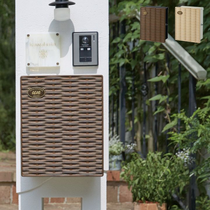 ラタンを編んだようなあたたかみのある風合いが魅力的な壁掛け郵便ポスト。