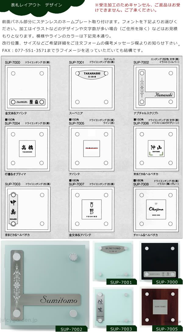 機能性とデザインを両立する涼しげなスクエアとサイコロのような郵便受け。ステンレス表札をパネルに貼り付けるタイプです。シンプルモダンな住宅にお勧めです。