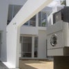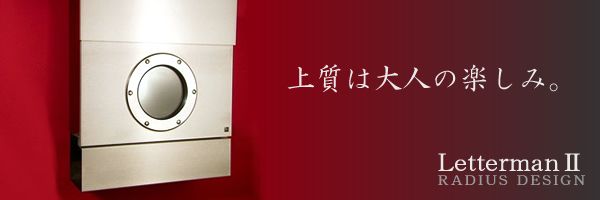 ドイツ ラーディウス社のデザイン郵便ポスト。四角い新聞受けがセットでついて、よりスタイリッシュに!ガラスとステンレスのコンビが美しい。