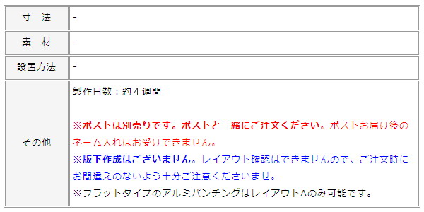 ポストに名前を入れて表札兼用にしませんか?ポストは別売りですので、ポストと一緒にご注文ください。