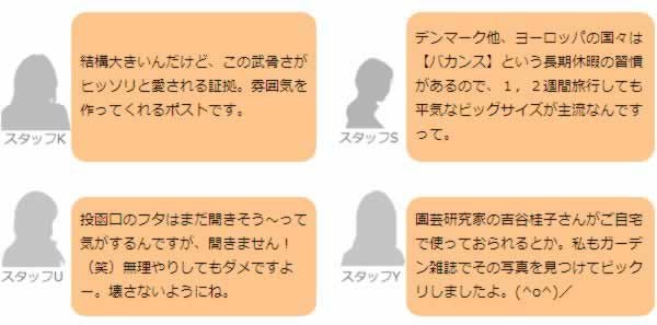 他の画像を見る ポスト 黒 青 赤 白 銀 緑 灰 肌 「ブルカデザイン (Bruka Design) 北欧雑貨店のポスト」 販売価格 ¥ 9,570 税込 カートに入れる お気に入りに登録する (0)