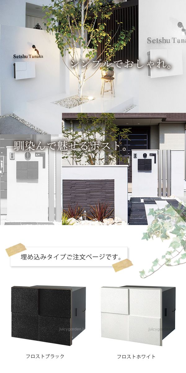 可愛くもカッコ良くも見えるデザインは女性、男性問わず人気。埋め込みタイプは門柱の裏側から郵便物を取り出せるので便利です。