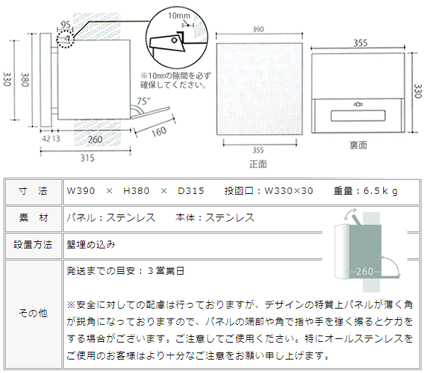 ※ポスト内部はヘアライン加工をしていないため、傷があります。
