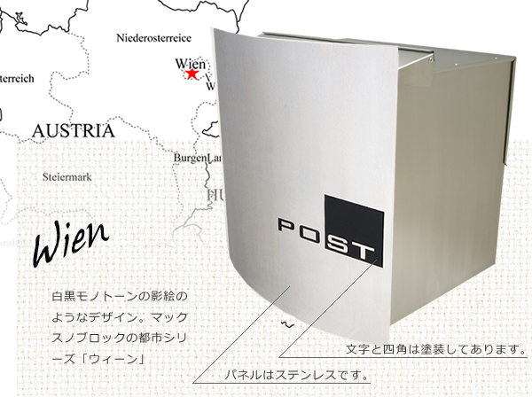 前パネルに「POST」と書いてあって親切なんです♪ステンレスヘアラインのパネルに文字と四角部分は塗装されています。