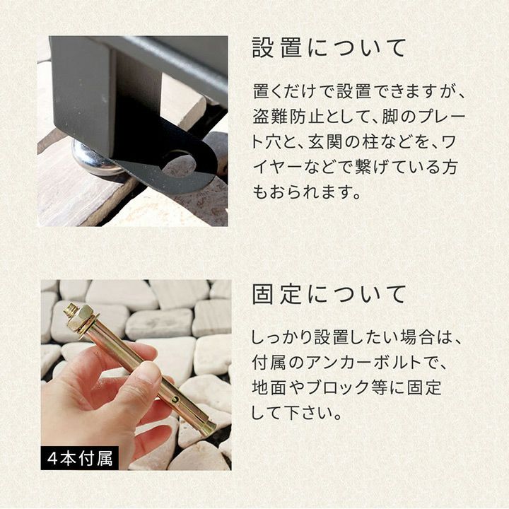 ※アンカーボルトで設置する場合、電動ドリルやドライバー、ハンマーなどの工具が必要となります。