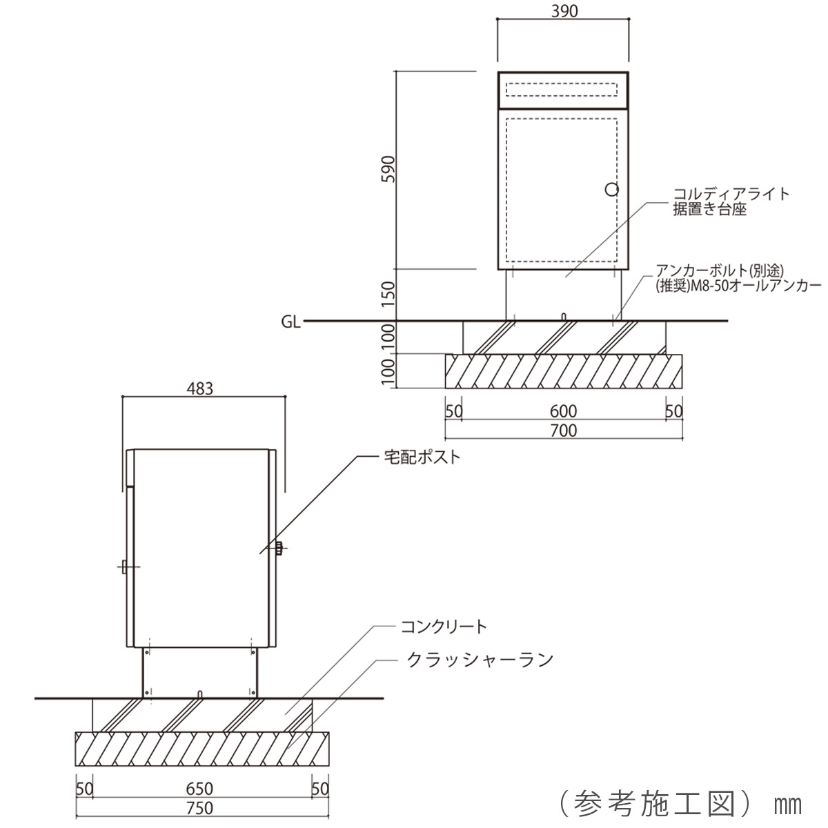 ※アンカーボルト等は付属しておりません。別途ご用意ください。