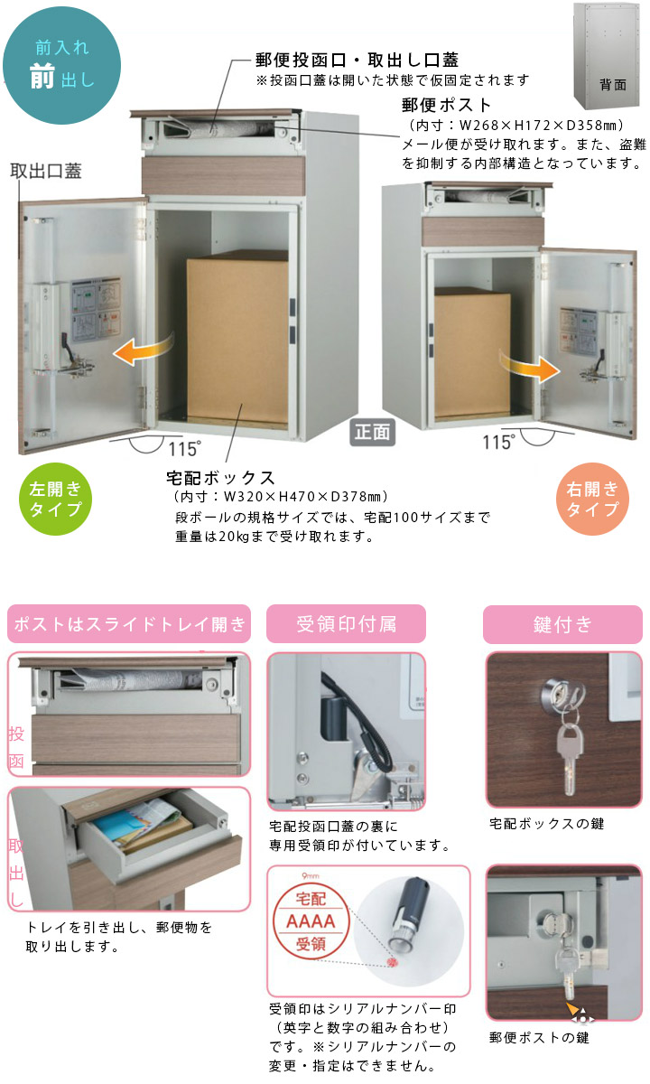 【宅配ボックス】(閉時)W390×H723×D432mm、(開時)W569.5×H728×D788mm