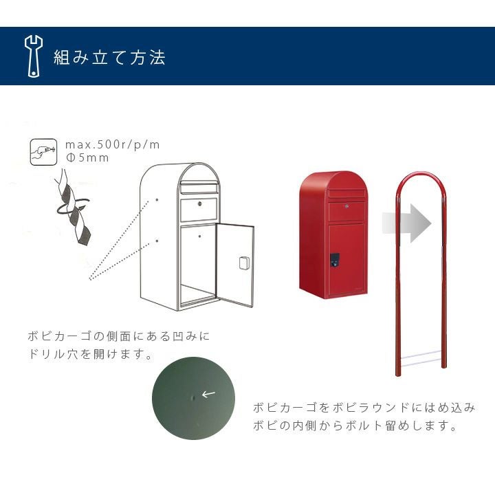 おしゃれ 宅配BOX デリバリーボックス 宅配ポスト 戸建て 不在時受け取り bobi ボビ ボビカーゴ スタンド取付 つまみ 「BOBI CARGO(ボビカーゴ) & スタンドBOBIROUND(ボビラウンド) セット (ボビ専用つまみ付き)」
