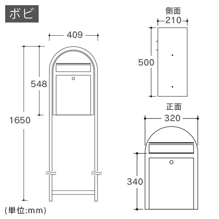 おしゃれ 宅配BOX デリバリーボックス 宅配ポスト 戸建て 不在時受け取り bobi ボビ ボビラウンド スタンド取付 郵便ポスト&宅配ボックス 前入れ前出し スタンド設置 プッシュボタン錠 「BOBI社製 ボビカーゴ(bobi Cargo)」※スタンド別売り