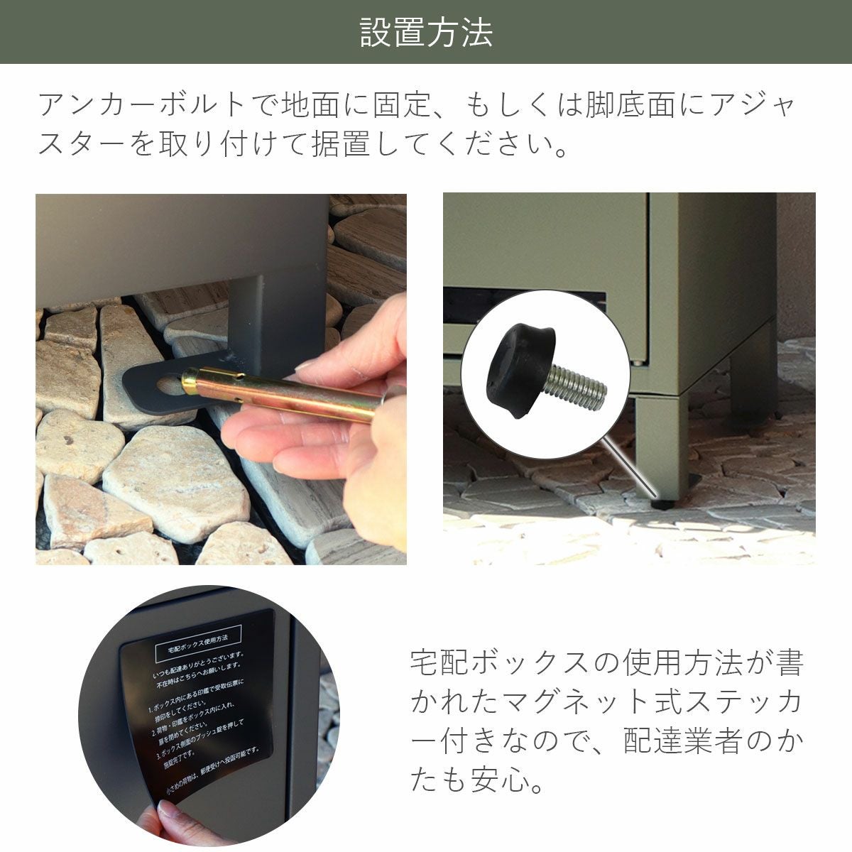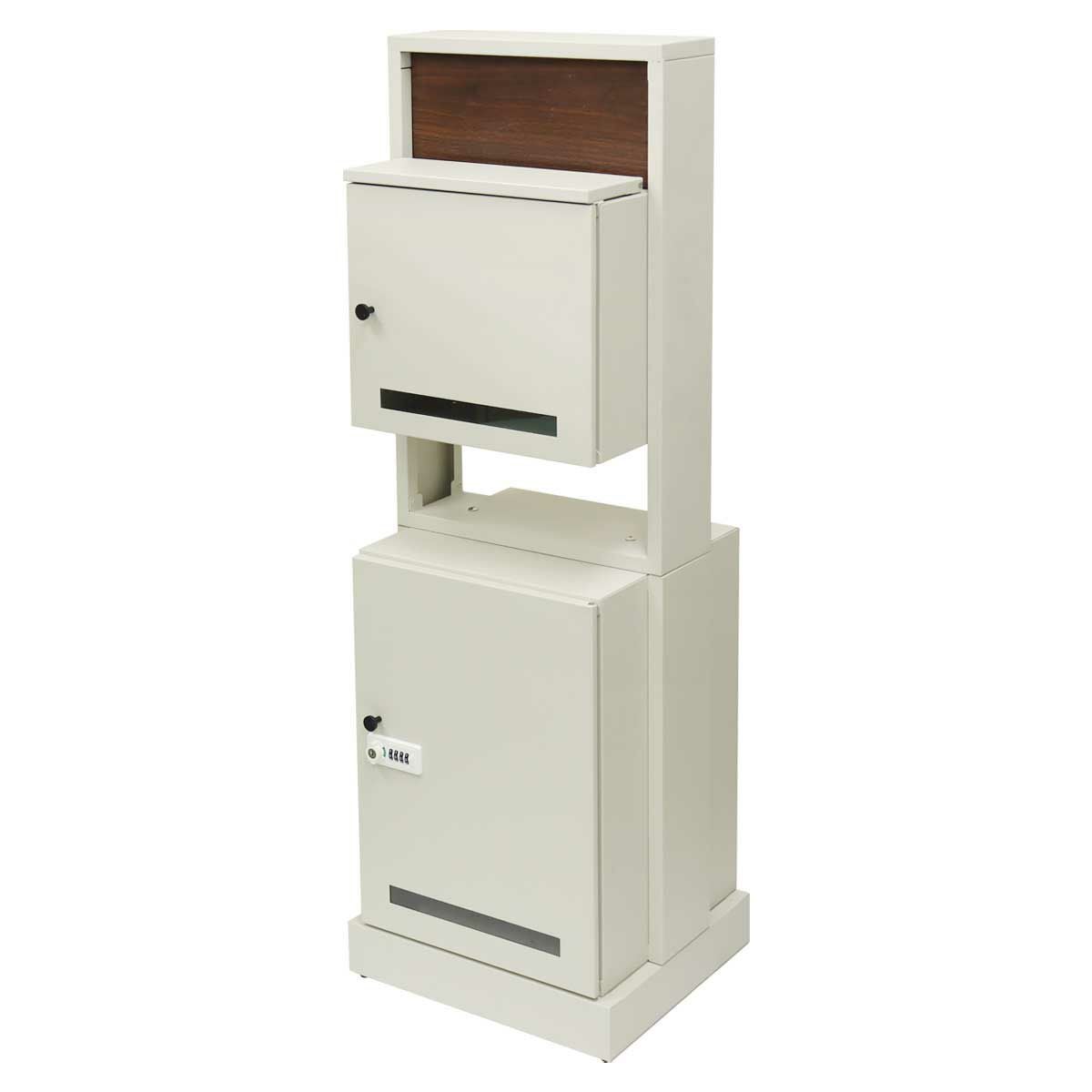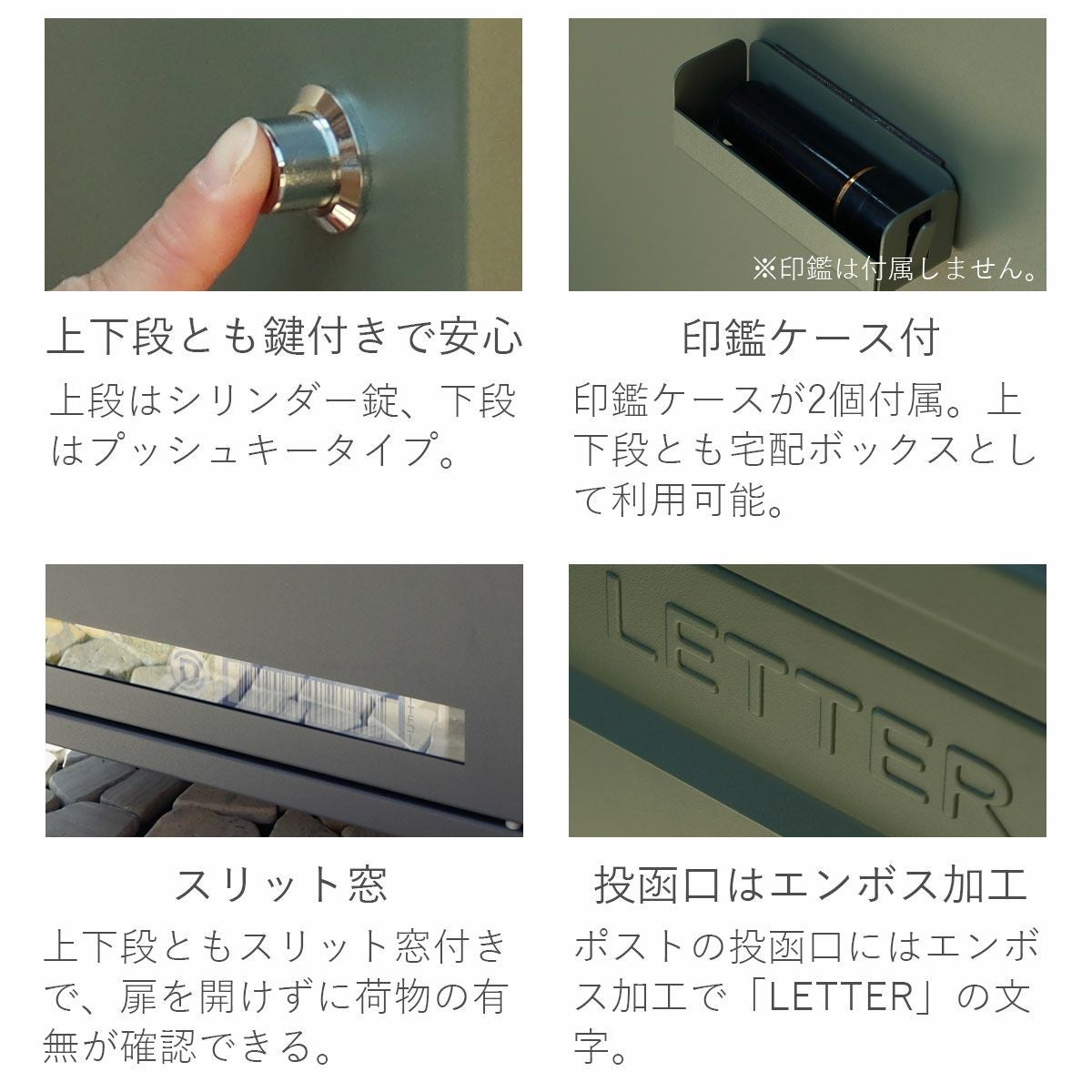 宅配ボックス 複数受取 かわいい モダン ナチュラル シャビー 和モダン プッシュ錠 ダンボール 90サイズ 120サイズ 玄関 ポーチ 庭 ガーデン ファサード 置くだけ アンカー 固定 すぐ使える 「 郵便ポスト 付き 宅配ボックス ナギ(Nagi)宅配 2段タイプ 」