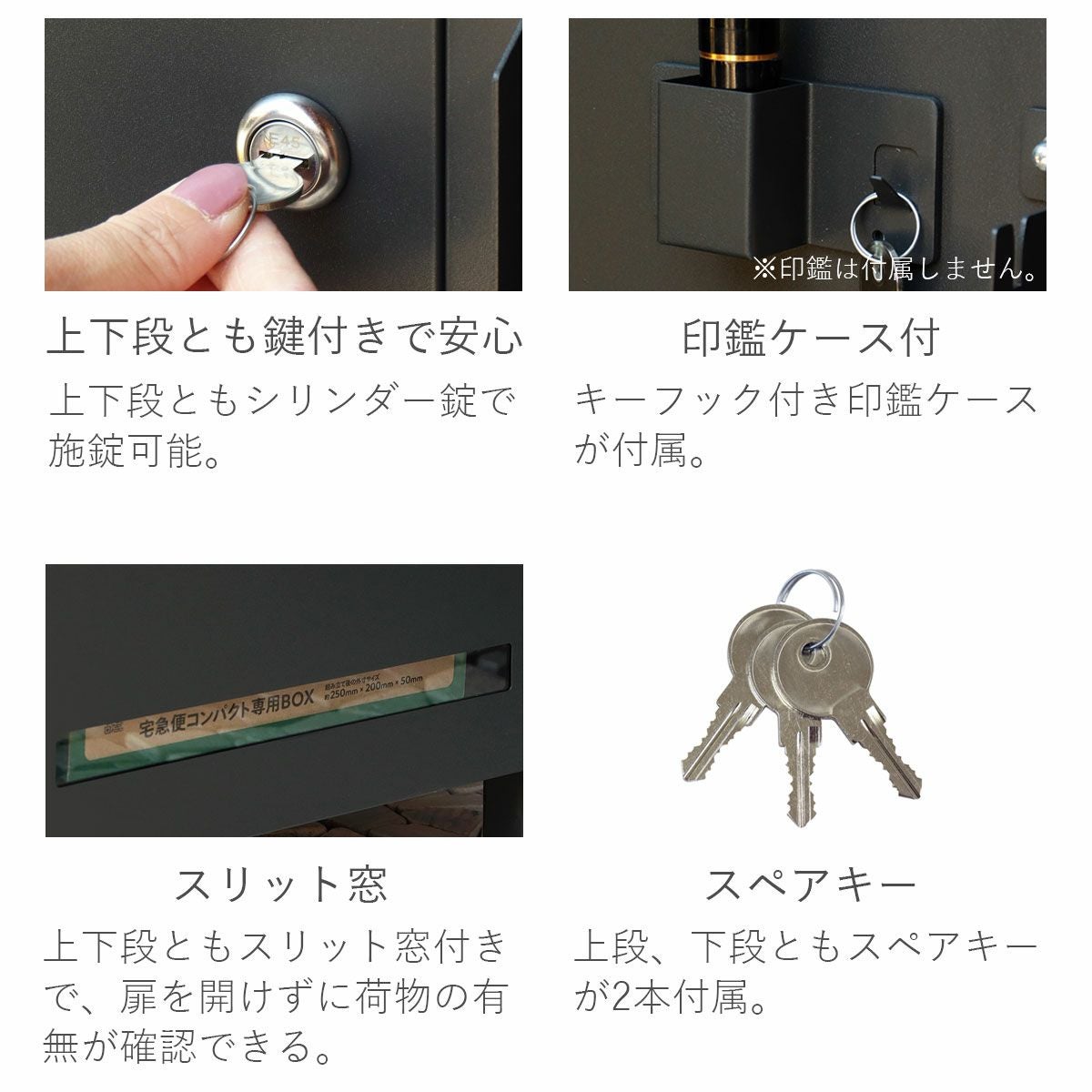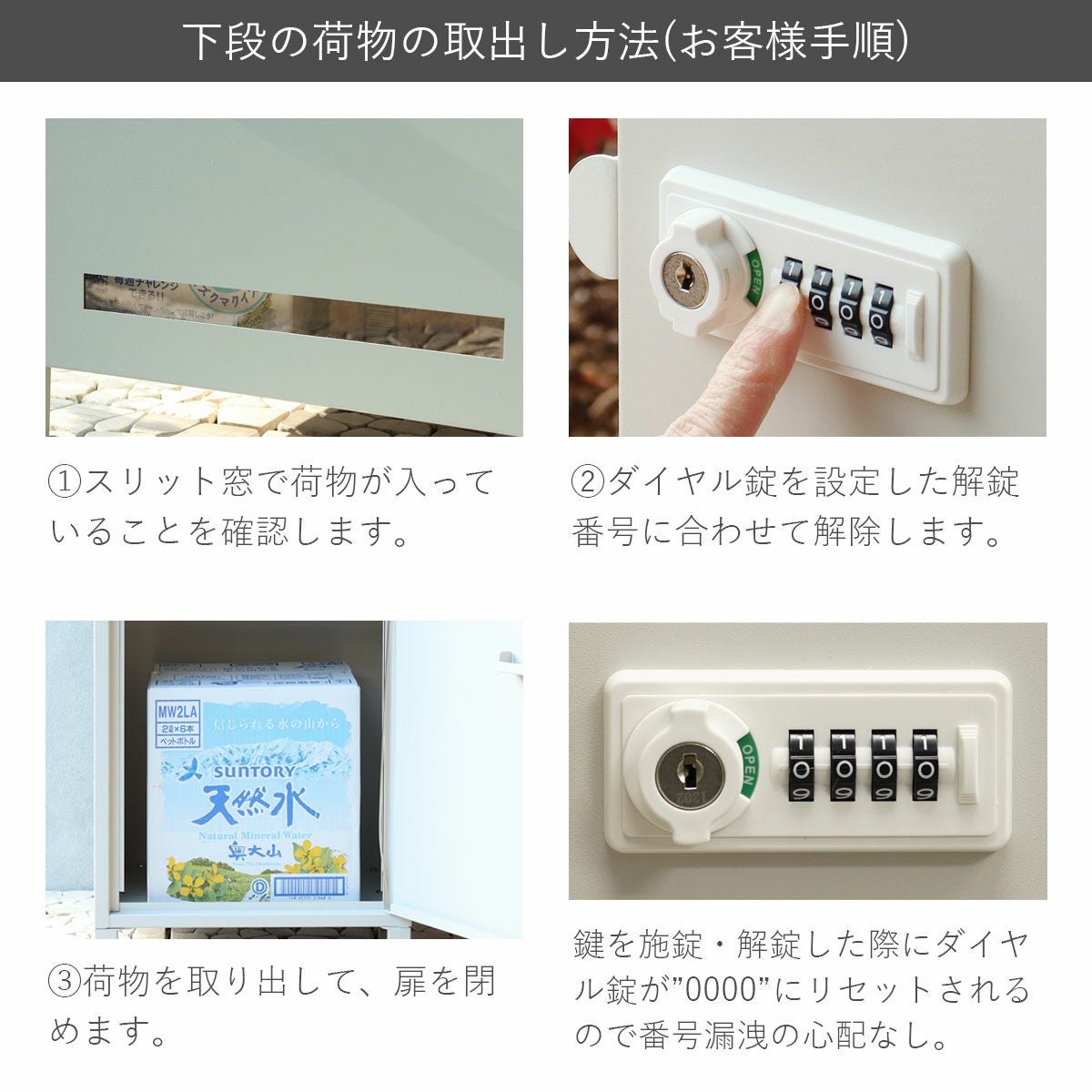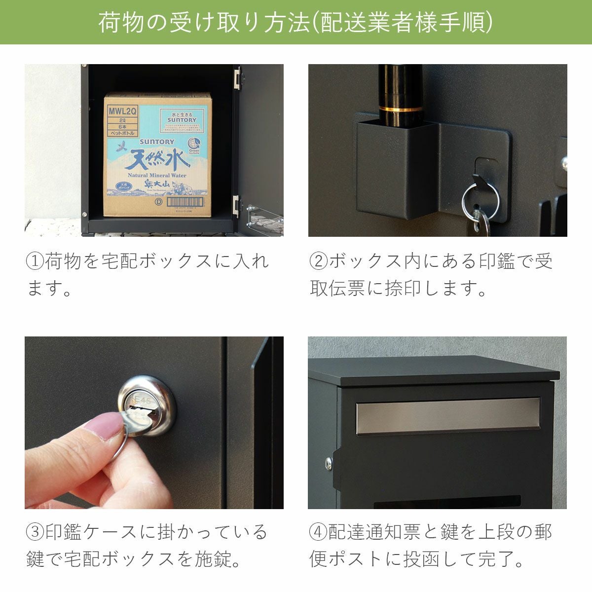宅配ボックス 複数受取 かわいい モダン ナチュラル シャビー 和モダン プッシュ錠 ダンボール 90サイズ 120サイズ 玄関 ポーチ 庭 ガーデン ファサード 置くだけ アンカー 固定 すぐ使える 「 郵便ポスト 付き 宅配ボックス ナギ(Nagi)宅配 2段タイプ 」