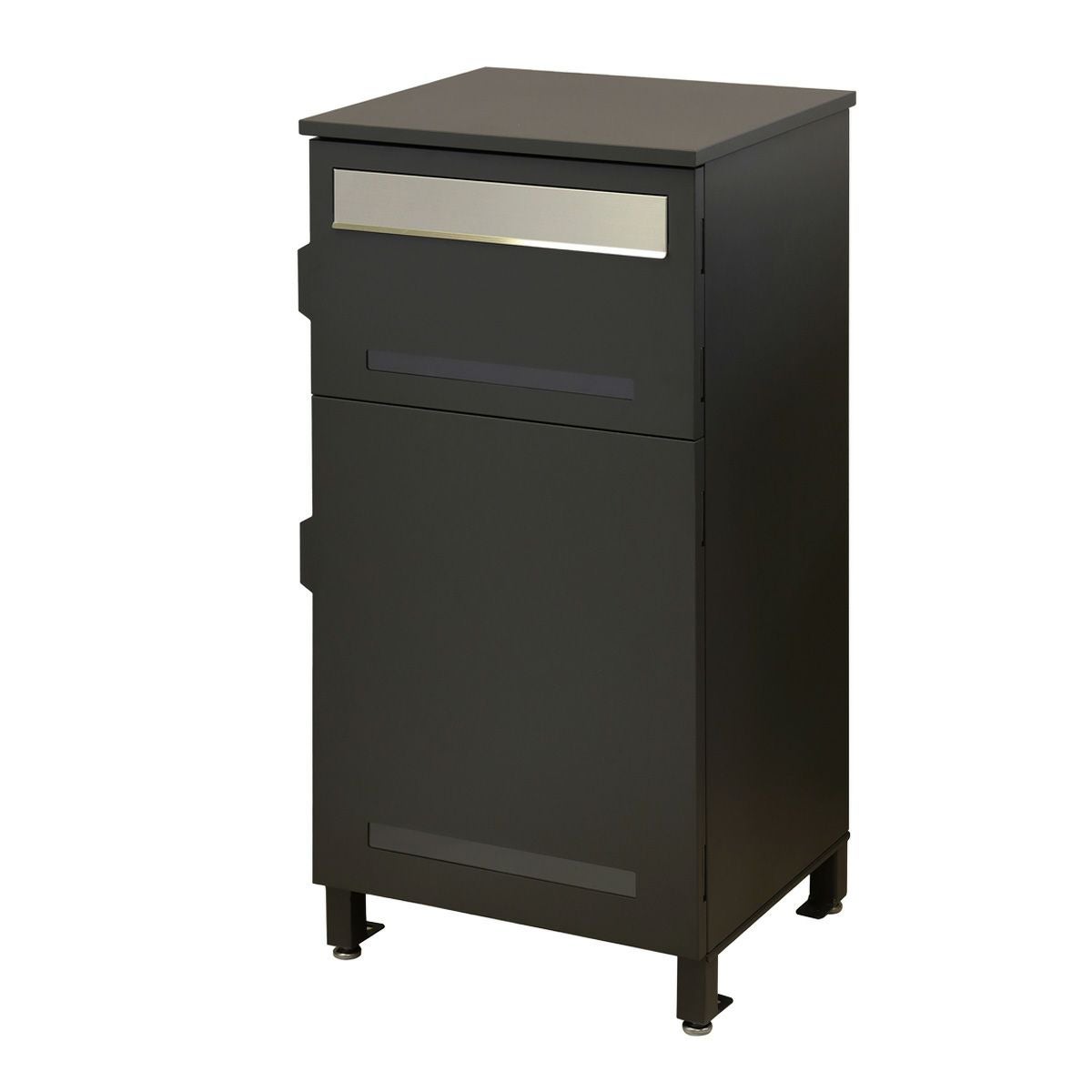 機能門柱 おしゃれ シンプル モダン かっこいい クール ブラック シルバー インターホン ポスト デリバリーボックス ファサード エクステリア 玄関 エントランス デザイナーズ 「 宅配ボックス付 機能門柱 ミース カラー:ブラック アンカー仕様 」