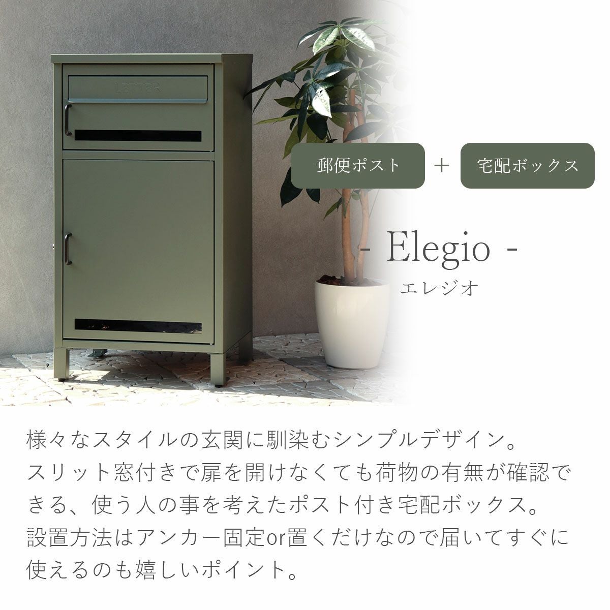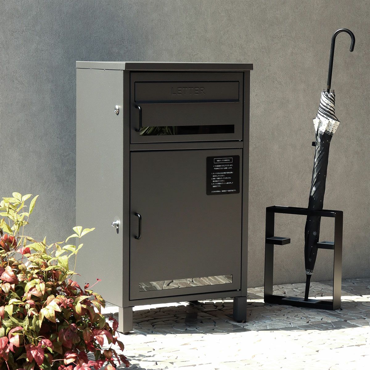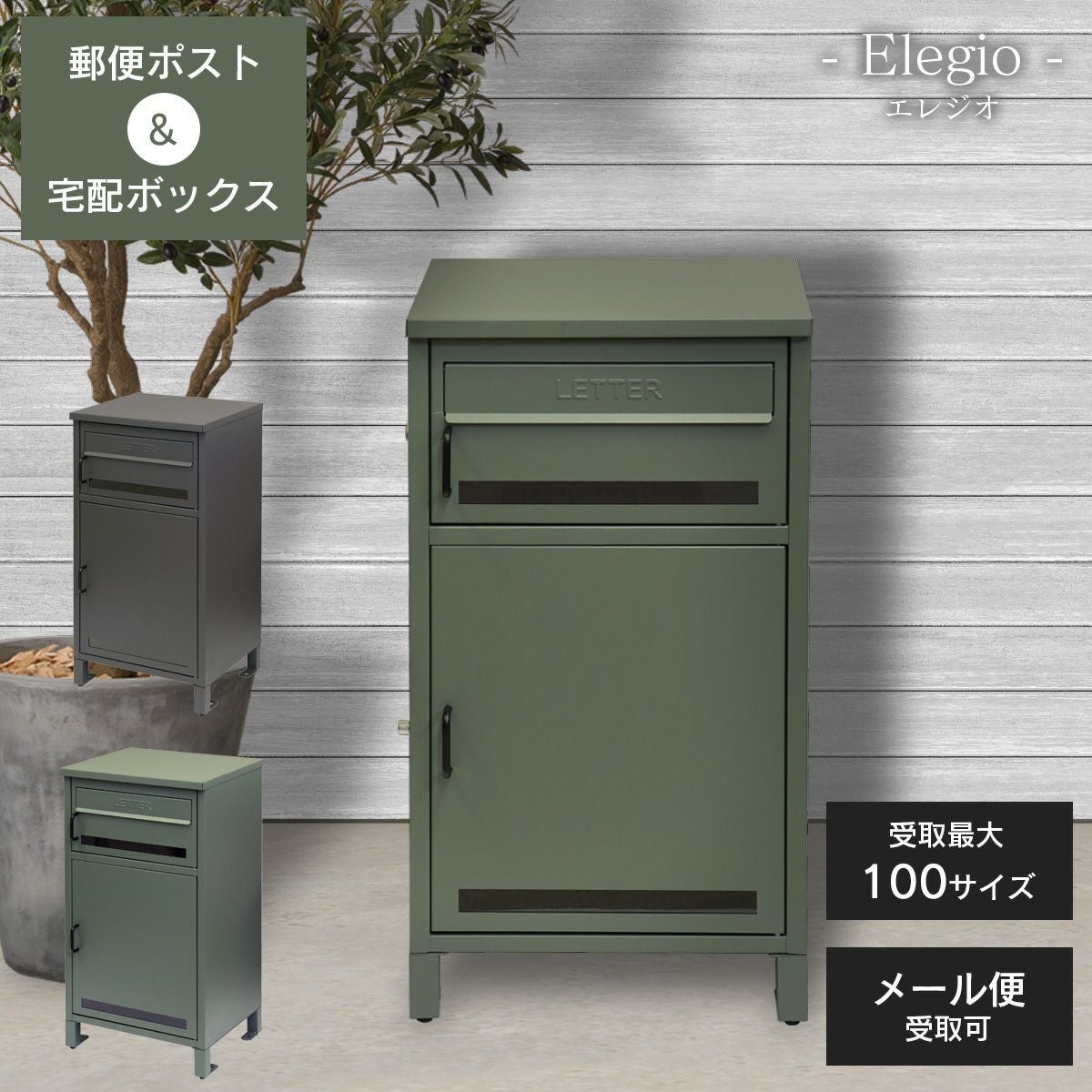 宅配ポスト おしゃれ かわいい モダン ナチュラル インダストリアル 世田谷ベース くすみカラー シャビー 和モダン プッシュ錠 ダンボール 100サイズ 玄関 ポーチ 庭 ガーデン ファサード 置くだけ 「 郵便ポスト 付き 宅配ボックス エレジオ(Elegio) 」