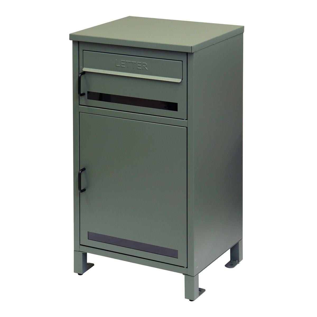 宅配ボックス かわいい モダン ナチュラル シャビー 和モダン プッシュ錠 シリンダー錠 ダンボール 120サイズ 玄関 ポーチ 庭 ガーデン ファサード 置くだけ アンカー 固定 すぐ使える 「 郵便ポスト付き 宅配ボックス ナギ(Nagi) 」