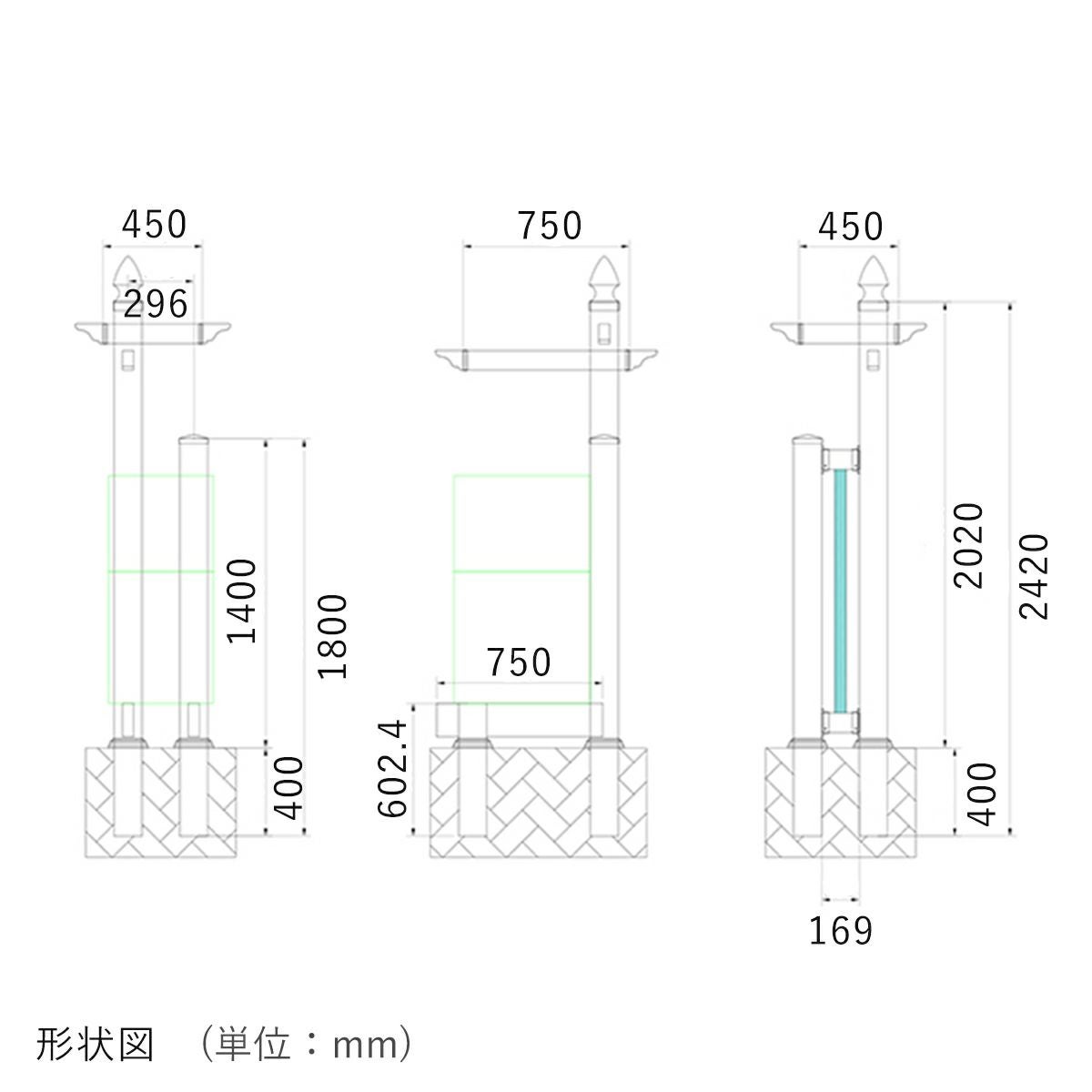 機能門柱 おしゃれ シンプル モダン かっこいい クール ブラック シルバー インターホン ポスト デリバリーボックス ファサード エクステリア 玄関 エントランス デザイナーズ 「 宅配ボックス付 機能門柱 ミース カラー:シルバー アンカー仕様 」