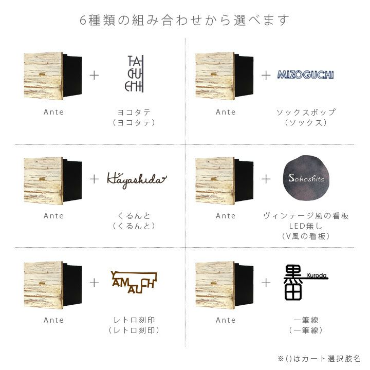 新築,リフォーム 建て替え 埋め込み式ポスト ヨコタテ表札 ソックスポップサイン くるんとサイン ヴィンテージ風の看板 LED無し レトロ刻印サイン 一筆線 (いっぴつせん) 【シャビー&ナチュラルスタイル 埋め込みポスト&表札セット】「埋め込みポスト Ante&ステンレス表札(6種類から選べる)セット」