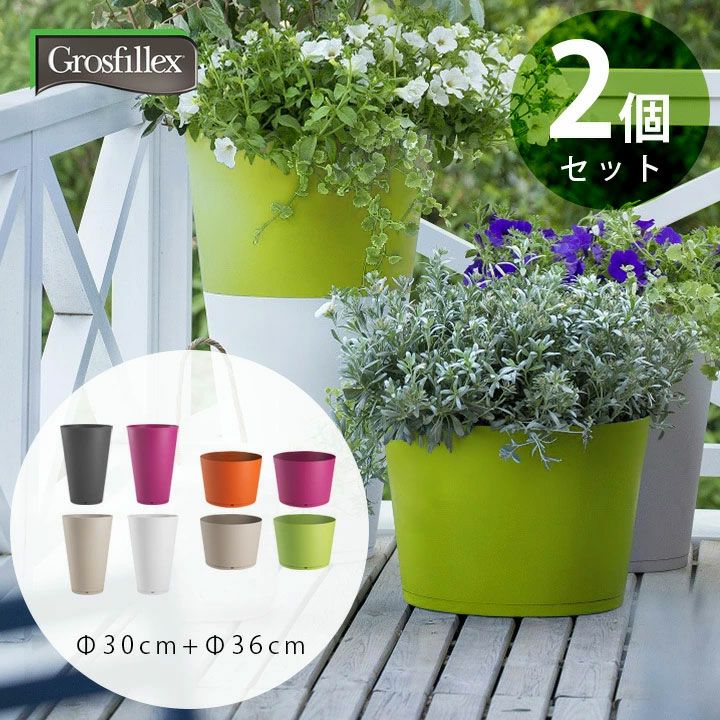 トーキョー プランター 鉢 植木鉢 フラワーポット ガーデニング フラワーポット 樹脂製植木鉢 「Grosfillex ゴーフィレックス TOKYO プランター Duo 直径30cm (約9号深鉢) + 直径36cm (約12号)」