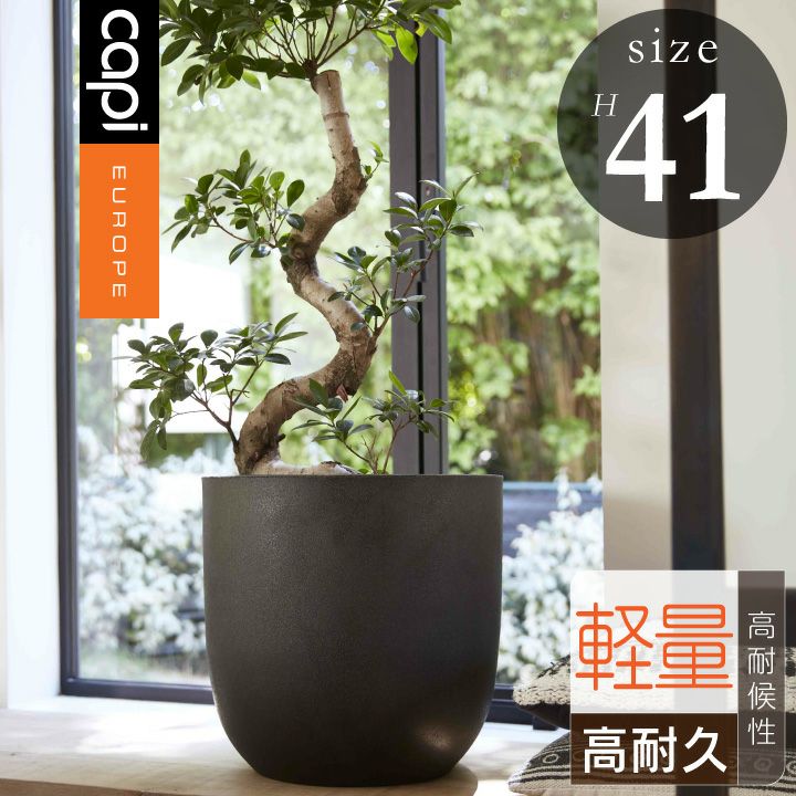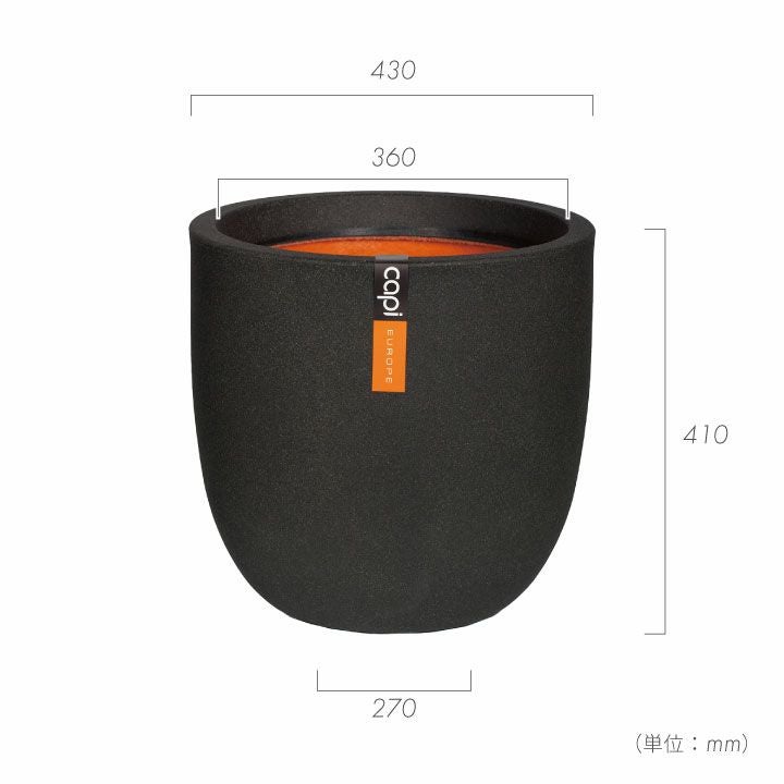 kbl933-0 CTN-KBL933 kbl933-0-1 オランダ プランター プランターカバー 花瓶 エコ ガーデニング 「カピ(Capi) アーバンスムース エッグプランター(UrbanSmooth EggPlanter) Mサイズ(Φ43×H41cm)」14号鉢相当/特大・大型/ブラック・ダークグレー/底穴なし/植木鉢 おしゃれ 軽量