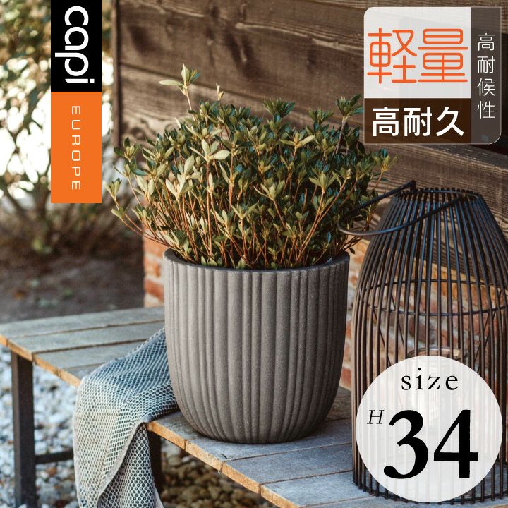 CTN-KOFI782 CTN-KOFZ782 オランダ プランター プランターカバー 花瓶 エコ ガーデニング 「カピ(Capi) ネイチャーリブ ベースエレガント(NatureRib VaseElegant) Sサイズ(Φ34×H46cm)」 11号鉢相当/大型/アントラシート・アイボリー/底穴なし/植木鉢 おしゃれ 軽量