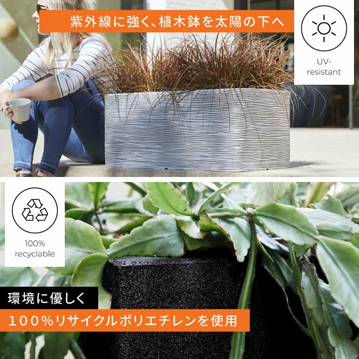 kofi963-0 kofi963-1 オランダ プランター プランターカバー 花瓶 エコ ガーデニング 「カピ(Capi) ネイチャーリブ レクタングル(NatureRib Rectangle) W73×H32cm」特大・大型/アントラシート・アイボリー/底穴なし/植木鉢 おしゃれ 軽量