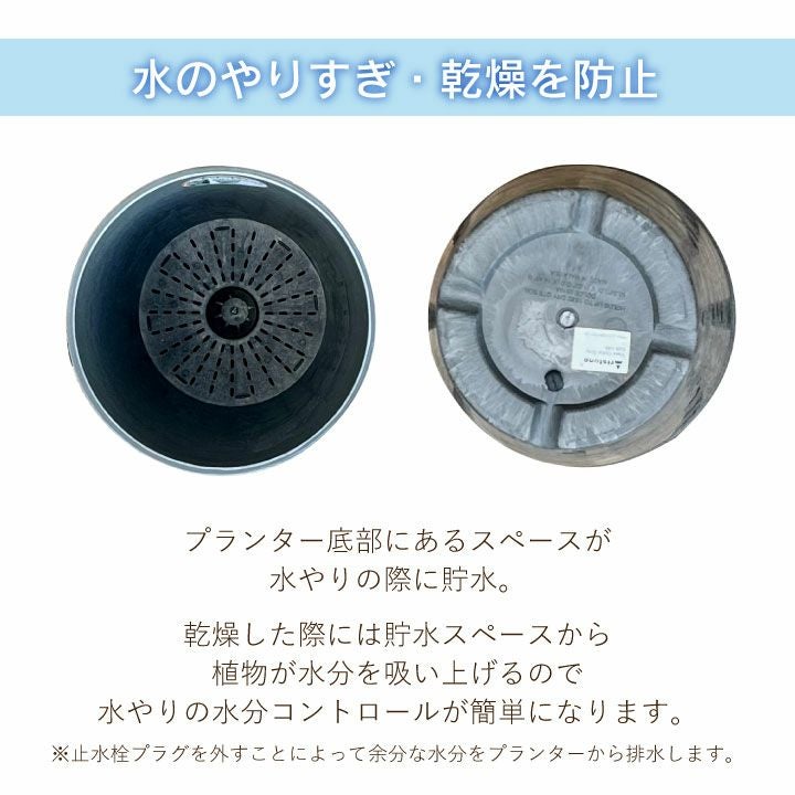 貯水機能付 プランター 軽量 樹脂 天然石 多機能 シンプル デザイン 耐寒性 植木鉢 おしゃれ「アートストーン(Artstone) ドルチェベース28(DolceVase28)」中型 9号鉢相当 高さ49cm 直径28cm 底穴あり ブラック グレー トープ