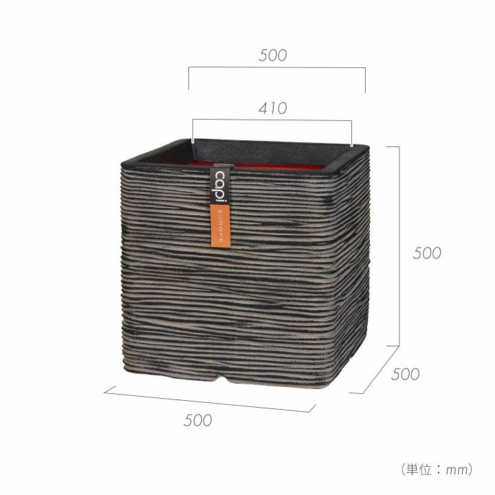 貯水機能付 プランター 軽量 樹脂 天然石 多機能 シンプル デザイン 耐寒性 植木鉢 おしゃれ「アートストーン(Artstone) キュービックポット52(Kubik52)」特大・大型 17号鉢相当 高さ48cm □52cm 底穴あり ブラック グレー ラスト