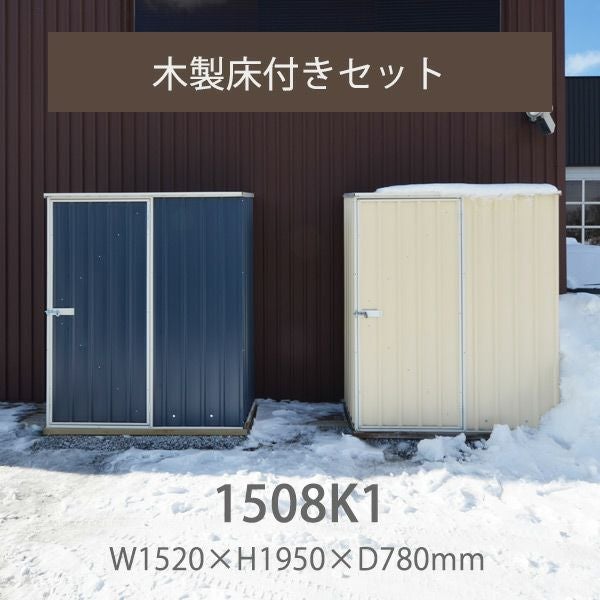 こちらは「物置本体(1508K1)」+「木製床キット」+「木製床用アンカー」のセット販売ページです。コンクリート基礎を製作いただき、コンクリートを床にされる場合には別ページからご注文下さい。
