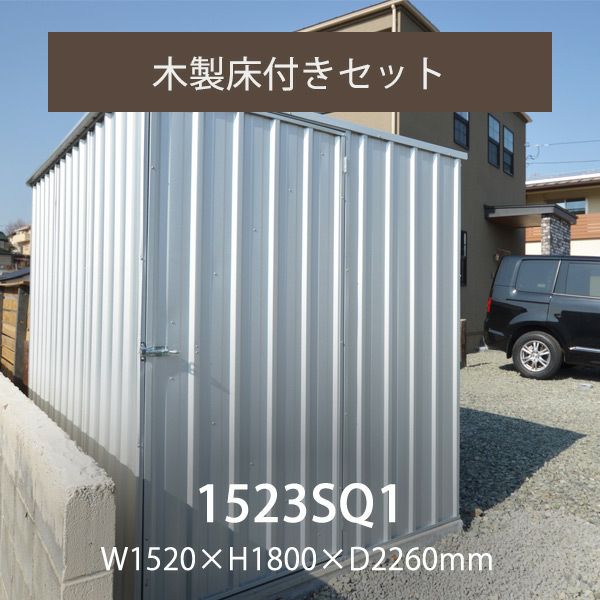 こちらは「物置本体(1523SQ1)」+「木製床キット」+「木製床用アンカー」のセット販売ページです。コンクリート基礎を製作いただき、コンクリートを床にされる場合には別ページからご注文下さい。