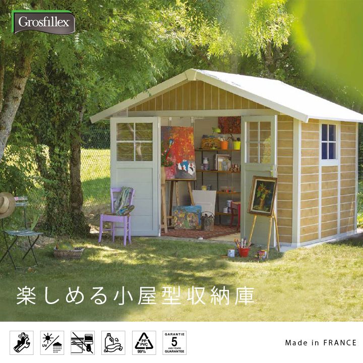 小屋のようなかわいらしいフォルムの収納庫「フレンチシェッド グラン シャーウッド」。