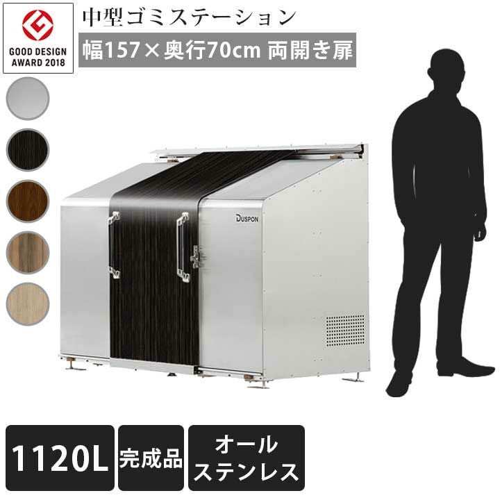 ゴミ収納庫 おしゃれ カラス対策 猫対策 雨対策 外から見えない メンテナンスフリー メンテナンス楽 錆びない 掃除が楽 匂いが漏れない 匂いが付かない 匂いが残らない 町内会 自治会 中型ゴミ集積庫「ゴミステーション スライドドア02 両開き扉 ステンレス 1120L」 ※法人宛配送限定 (SN)