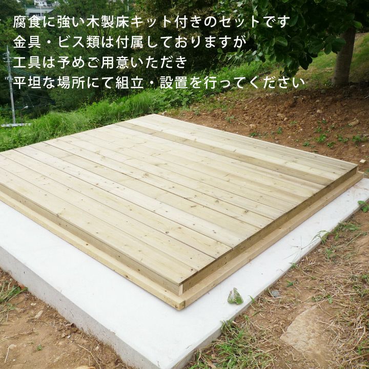 重い物も安定して置ける / 地面との段差が少なく出し入れがしやすい / 床を水洗できる