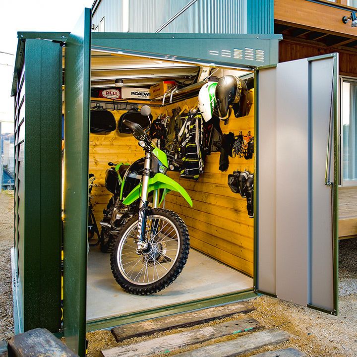 趣味を楽しむための物置。ワークスペースとして使える大型物置の取り扱いもあります