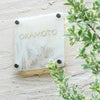 透明なガラスに入ったマーブルがきれいな表札です。