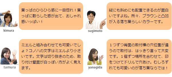 サイズ:W70~100mm角(葉のデザインによって異なります)、板厚/約3mm