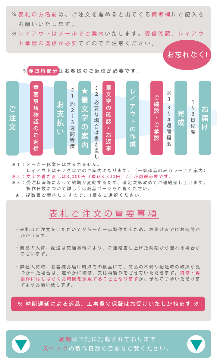 1点ごと書家に製作を依頼するため、代金は版下作成前にお支払いただきます。また、キャンセルはお受けできませんので、ご了承の上お申し込み下さい。