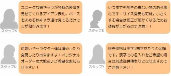 他の画像を見る 表札 玄関 ネームプレート サイン アイアン キャラクター 木 庭 ガーデン 通販 ネット販売 遊び心満点一生懸命走るキャラがポイント 「鉄キャラ楽漢表札 お忘れです IS-19」 販売価格 ¥ 39,600 税込 詳細を見る お気に入りに登録する (0)