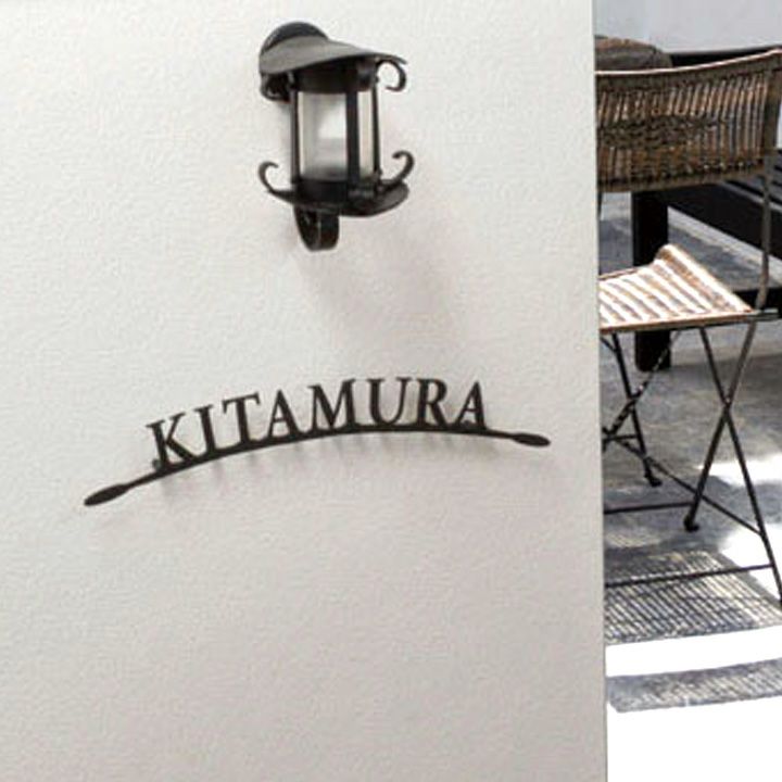 弧を描くように並ぶデザインのシンプルなアイアン切文字表札です。