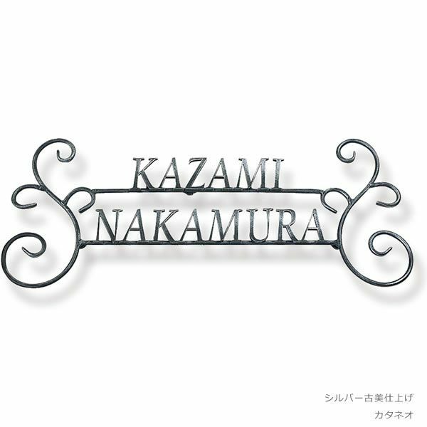 そのせいか、ヨーロッパの旅先や写真で見た門やフェンス、鉄柵、橋の欄干・・・どこかそんな雰囲気を思い起こさせます。レンガやタイル、石材など自然素材に馴染むアイアン表札です。