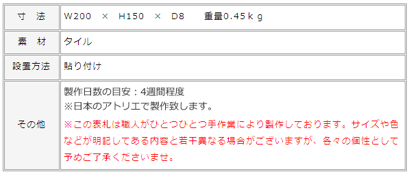 4. オンリーワン 「ドディチタイル イタリア職人の手作りタイル表札 200×80」