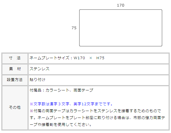 オーストラリア、レターボックスマン社の郵便ポスト【レターボックスマン】のための専用表札です。 多くのお客様からのご要望にお答えして、レターボックスマン専用表札をネットショップでご注文いただけるように致しました! ネームプレート台座に取り付けるための表札なので、下記のレターボックスマンが対象です。 ・レターボックスマン3090 ・レターボックスマン3091+NPポール付き ・レターボックスマン3105+NPポール付き ※3091・3105のスタンダードポールには台座がついていませんので、表札は設置できません。 表札はステンレスヘアラインに、文字が切り抜きです。 レターボックスマンの雰囲気に合わせて、可愛いイラストをお選びいただけます。 カラーシート2枚がお選びいただけますので、ネームプレートの裏からお好きなシートを貼ってカラフルに楽しんでもいいし、シートなしでポストカラーを使っても楽しいです。ステンレスに抜き文字仕様でポスト本体の色も使えて飽きさせません。 ※文字数は漢字の場合3文字、英字の場合12文字までです。