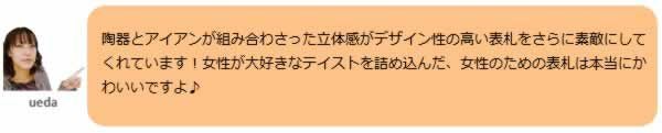 他の画像を見る 表札 陶器 真鍮 アイアン 白 黒 グレー ボルト シャビーな陶器とブラスアイアンの表札 「ヴィラ キー/レース」 販売価格 ¥ 71,610 税込 詳細を見る お気に入りに登録する (0)